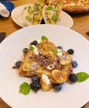 Nice atmosphere and service by our waiter Food a bit costly for size of entree as did not fill up the males in our group. Tasty but not enough to be honest on the plate Slow service on the ordering and delivery especially on the drinks side, maybe a bit short staffed