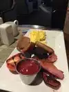 We ate here after seeing the Symphony and our first choice restaurant was closed due to repairs. The hotel told us at check in that the restaurant served food until 11pm, we arrived at 10:30. I originally ordered the French cut chicken, but since we arrived too late and it takes 25 minutes to cook, I couldn't get it. I had the vegetable quiche appetizer which was perfect for me, but others may find its portions to be too small. My partner had the French onion soup, ok, but over salted. And the bread...store bought and warm but as stale as you can get, rock hard, I am surprised it was even served to us. My pear salad was fine, my partner's shepherds pie was good, bread was lightly better (not stale at least). Based on other reviews, we may have hit them on an off night, arriving late, etc. I'm not sure I would go out of my way to go here again though.