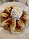 So good we came back the next day. Each time I ordered the red, white and blue waffle (waffle with strawberries, blueberries and cream) and my husband had pancakes with eggs and bacon. It’s a comfy, friendly, low key place that we would return to time and time again if we could. Always busy but never a long wait for a table.