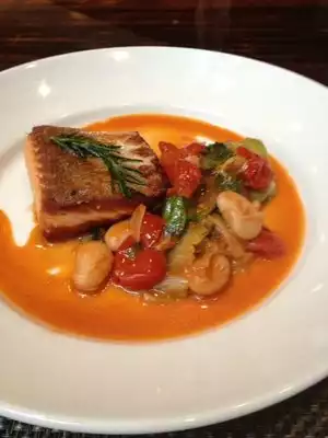 Food was great. Went with a party from work. Noise level in the restaurant was a bit high, yet it was a party from work. I had a Caesar salad which was ok. I also had a Mahi Mahi pan fried with a prosciutto crust on the skin side with brussel sprouts and a light puree of something - maybe squash with some citrus. The fish was amazing and the service was great. I would definitely return.