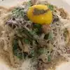 Good reviews online and walking distance. Cannot complain. Good wines by the glass but served as a quartino which is a small pitcher. Much more than usual pour and more than I could finish! Great Nero! I started with their tomato soup. Didn't know tomatoes could be so red! I followed with the lamb sagu. Basically a meat sauce done with pork in the roman style but varies by area. Chunks and not a ragu or bolognaise. Pasta was basically cut up squares of lasagna noodles but cooked al dente. I ordered a half which was not unusual per the waitress but not listed. She advised me that that would be plenty and did not need order a main course plate. Still the bronzino did sound good and next time I may bring a friend to split it all. The half pasta was a full plate and the regular size would feed a whole family by what she described. I opted for a semifredo and was good as well. Wish they had smaller sized plates perhaps as a pre fis or tasting to have the ante pasta. Pasta and then a primo n secundo dishes.