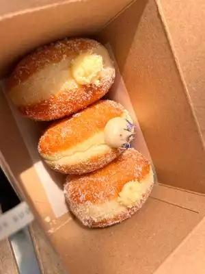 ..and on our second try, sweet success! 2nd visit to the flour box today. Tried to go a month ago, waited in line for hour+ before they sold out to the customer two ahead of us. Today, got there at 9:30--half-hour prior to opening. Line was already down the block. Pretty festive group, really. Malasadas were top notch- smoked salmon, lemon/lime, coffee brulee, pecan. Go early and have the right mind-set. Enjoy the experience and drama of "will they last til I get to the front of the line!"