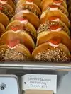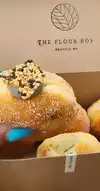 We had heard about the Flour Box so decided to get there right when it opened to buy donuts. We arrived 10 minutes before opening and there were already 100+ people in line! We stood in line for 90 minutes in the pouring rain. When we finally made it to the register we ordered 2 of each donut. We tried each one and decided they were ALL worth the wait! Highly, highly, recommend!