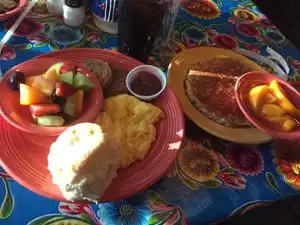My grandson loved this visit. The bright colors and the large pancake was a hit for him. Also, this was in a nice location. It was so nice I left my car door open an no one Disturbed a thing!! Overall nice restaurant and good price.