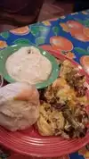 Biscuits are to die for, with gravy, jam or butter!! The gravy is really really good too. Coffee, eggs and service fast and friendly. Probably a little warm inside but the place was full. We'll be back as soon as we can!!