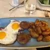 To be honest we came here as a second choice and was a tad disappointed. Their grade is pending and seems that it’s been pending for quite a while ,I asked the host and was told they had appealed and waiting for the great any day. The staff is super hip and very nice . There were flies flying around and the bathrooms had very slow drains ,that concerns me as a diner . We had two small tables and a really cute couch setting, however ,the tables were so rocky that we had to hold onto them in fear that our breakfast would be in our lap. Even though one person in our party had a hair in their food which ended up in their mouth unfortunately we all still tried to enjoy the food .... this is supposed to be a super fun bar at night and I think I will definitely be back for the bar atmosphere but I will branch elsewhere.