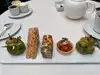 Delightful afternoon tea at a leisurely pace. Sam was our server and went the extra mile to meet my dietary restrictions. The food was impeccably plated and delicious. I would definitely revisit when back in SanFrancisco. The ambiance was lovely. It was enjoyable watching people celebrate life! The harpist wa a lovely addition to our experience