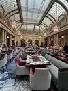 This is a magnificent and historic place where you will have lunch under the glass roof but the meal is frankly not up to par in quality and choice. At lunchtime, the imposed two or three course menu is extremely expensive for non-quality products. Tea time is even more expensive. The service is not professional: your plate is cleared while you are still chewing your bite; the addition brought as soon as the dessert was finished!! Come and have a coffee to enjoy the place, that’s it!