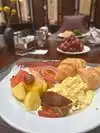 We had breakfast at Garden Court before a Hamilton matinee. The food is very good at the setting is classic Victorian San Francisco. My husband and daughter had the buffet and I had the classic American breakfast. Mine was plenty of food. The tomatoes were a nice side. The potatoes were good but a little crunchy which I don't care for. The chicken sausage had good flavor and the eggs were good. My husband and daughter thoroughly enjoyed the buffet, they both had seconds.