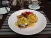 Open for breakfast or lunch; a long line but once you sit in, good service; they have a buffet, and do Saturday afternoon tea.
