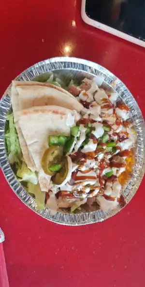 Had the platter with lettuce, rice, and two meats. The sauces add a punch to the meal, and it's reasonable priced. Let me warn you the hot sauce is hootttt!!!!