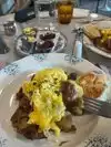Perfect breakfast meal. Omelets were cooked perfectly. Nice and fluffy without any brown. Great flavor on the ingredients. Eggs Benedict were awesome as well Bacon was just right. Darn good biscuits. Great table service. Decent prices.