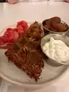We shared these wonderful dishes and savored every bite. Waffle latkes with a nice crisp bite and homemade applesauce topped with smoked salmon, whitefish salad that was perfectly seasoned, Matzoh ball soup had delightful herbs throughout a rich chicken broth, and the pastrami and Swiss cheese melted in your mouth!! Each plate was cooked and presented to perfection! Outstanding diner/deli!