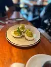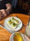 First time to visit. Don't take reservations so we waited at the bar with limited seating & space. Ordered an expresso martini. Bartender said 'we don't have those' (?) No explanation, no suggestion for something else - she just stared at me. Finally I said 'give me a minute'. Friends she had not been very amiable to them either. Once seated I asked our waiter & he said they don't stock Kahlua. Shared 5 appetizers that were good & 1 macho salad that was VERY good. Surprise was an order of deviled eggs gets you 3. Waiter was attentive. Restaurant is somewhat crowded & loud.
