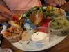 Great food , in fact delicious food, great service, very friendly staff made us very welcome, good selection of beers, so good visited twice, tried different dishes both times great, so good bought tshirts, well worth a visit, we also had a great santa