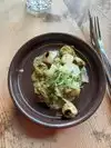 My daughter and I were conflicted and ended up ordering and splitting 2 entrees (salmon and vegetarian). They were so good, we wanted to go back the next night. My husband had pasta which is said was delicious. The service was perfect. We had a Celiac with us and he was able to eat safely. The restaurant itself is bustling and a bit loud.