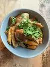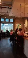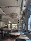 Large open space restaurant with modern feel, but not much atmosphere. Friendly staff and helpful. The menu was limited, but interesting choices, good wine selection. Food was average and two of us had the vegetable curry and it was a large bowl filled mostly with very al dente and halved Brussels sprouts, not very tasty. The salmon was better. Pricey for what we had.