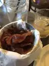 They have sliders with spam and pineapple with a kick! Sounds weird I know, but step out of your comfort zone (and bad memories) and try it. This dish is original and tasty! My family also loves the candied bacon! How do you go wrong with candied bacon??
