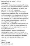 Great food, lots of choices!!! Really spacious restaurant that makes it so comfortable to enjoy your meal. The service was friendly, accommodating and meals arrived in no time. We really enjoyed our lunch at the Lot and look forward to going back to try some other tasty choices!