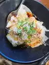 Noodles: Yummy noodle soup. Hand cut noodles are more chewy but delicious. Flat noodle is less chewy but equally delicious. Spicy wonton is a softer smaller dumplings in spicy chili sauce. I heard someone said they can do without the oil, but the oil on the noodles are seasoning sesame oil that brings the flavor to each dish. Wait time Had to wait 45 mins before we were seated. Be prepared.