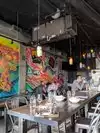Very small so you might need to wait for a seat. Several tables for 4, high communal tables or slot at the bar. Good beer on Tao, excellent wood fired pizza, nice salads (the kale Caesar is light served with a vinaigrette). Meatballs are excellent, pair with Brussels sprouts and focaccia. We went early on a Friday and got the last 2 seats — very quiet and relaxing on Monday. Convenient for the uptown SIFF theatre. Very efficient service despite the cramped quarters.
