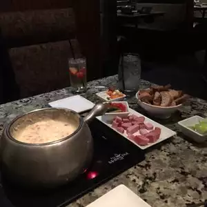 A very fun fondue experience. We were there for a Sunday brunch and our waiter (Cade) could not have been nicer and extremely helpful as it was our first time there. He made suggestions and explained everything perfectly. We did the 4 course experience. Cheese, salad, entrees and dessert. It is pricey but was so much fun you really didn't care. They have a nice wine list and the cocktails are also good. We stayed there for 3 hours and never felt rushed to leave. I definitely recommend it for fun time out on a special occasion. Thank you Cade.