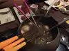 First course was pretty good, we had the cheddar cheese fondu. Next was salad and both mine and my husbands salads came out with rotten lettuce and very large wedges of cabbage. We did not get the air of professionalism from the waitstaff and didn't feel comfortable sending it back. Dinner was less then mediocre. We had Pacific Rim in the Coq Au Vin broth. Neither my hubby nor I could taste the so called marinade on the meat and the broth was average. Dessert was okay, did not care for the raw marshmallows and whole piece of cheese cake for dipping. Waitstaff didn't seem knowledgeable in recommending pairings for food and broth, and told us you can't over cook the meat in it! WRONG! Unless you enjoy rubbery meat, you can overcook it. The sides that came with dinner were basic veggies and not very many. For the price we expected way more, and just like most places now a days, it let us down.... Save your money and just buy your own fondu pot!