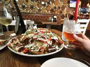 GREAT nachos, great atmosphere, great drinks, great staff! It's a great place to walk to and grab a bite or some of the moonshine made drinks!