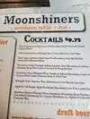 Stopped in here one night after we decided our first choice wasn’t what we thought it was. The Moonshiners was a great find for us. We had the tacos and burger, both were very tasty. Prices were reasonable and they had a good selection of what appeared to be local beers. The staff was very attentive, pleasant, and helpful. Definitely had a cool vibe and the music that was on was spot on, during our visit I heard The Smiths at least twice. A refreshing surprise from everywhere playing modern top 40 stuff. Only thing to watch for is it can be a bit tight in there and watch the table bases. They are made of metal that is slightly raised and sharp 90 degree corners, I kicked the hell out it and thought I broke a toe.