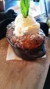 This pub food is amazing. Fish and chips were HUGE and tasted great, served with tartare and malt vinegar for the real British taste. The bread and butter pudding is a must and we couldn't contain ourselves so the photo is the after photo :-)