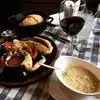 Fun atmosphere w historical wall hangings. Husband loved the clams and linguini (dark pasta). We didn't understand the hot clam juice shot, thing, it was not as good at the juice in the clams and linguini dish. I had a fried seafood combo w small pieces of fish, which were good, small pieces of shrimp which were tasteless. Garlic bread was good...we ate it for breakfast the next two days. Not much wine selection. Difficult parking. The drive and parking were not worth the quality of the food. If I could walk there, I'd go more often.