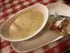 We've been here for meals. This weekend was for some hot clam chowder and garlic bread around 3pm since we were meeting friends for dinner later and didn't want to eat too much. I had the cup of clam chowder (white not red) and my friend had the bowl. It's funny they look the same amount when they arrive, but it is just the giant lip on the bowl makes it look like the same amount as in the cup. The cup is really a small oval bowl. The server told us the cup is one ladle of soup, the bowl is two. The soup and garlic bread arrived so hot and wonderful! We also happened to sit in a booth that was under a heater vent. Felt really good. It was one of those clear, cold days where the views from Bernal Heights and Twin Peaks are at their very best, but the weather can be bone chilling. Heading for The Clam House was just the thing.