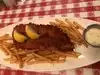 I lived in SF for 15 years and never once heard of the Old Clam House. Located on Bayshore Blvd., on the east side of the 101, in a largely industrial neighborhood, this may not be entirely surprising as its not exactly on the beaten path. What is surprising is that the Old Clam House has been in business at this location since 1861. The exterior of the restaurant looks old and would not be a great draw for the uninformed. I was taken to the restaurant by a resident of nearby (and increasingly gentrified) Bernal Heights who had discovered the Old Clam House on one of their dining explorations. The interior of the restaurant is filled with loads of nautical themed memorabilia that could take hours to view in detail. We had made a reservation for a Saturday night, but on arrival the restaurant was only partially filled. We were quickly seated and given water and menus. While called the Old Clam House, clams don't exactly take center stage on the menu. The majority of entrees were either seafood or seafood in pasta, with a couple of options (roasted chicken & ribs) for those looking for an alternative. In our group of 4, 2 ordered the fish fry ($19.95) and 2 ordered the Sand Dabs with acini de pepe pasta ($24.95). Bread was not offered, but could be ordered if desired. Our meals arrived quickly and were hot upon arrival. The fish fry consisted of breaded fish and calamari pieces, plus deep fried potatoes and several small sections of corn on the cob that looked to havre been grilled. Everything appeared to be fresh, but a meal made up almost entirely of fried food - probably all cooked in the same frier - tends to all have the same flavor. The sand dabs appeared to have been pan fried in butter and garlic and smelled wonderful. The acini de pepe pasta is a small, kernel-like pasta that was flavored with oil and garlic. This meal also came with several small sections of corn on the cob. Everyone finished their meals and the two members of our group who ordered the sand dabs seemed especially pleased. For the fish fry, there was less enthusiasm. Overall, I would describe the Old Clam House as adequate, but hardly outstanding. A great place to take someone from out of town, but you might not go there often as one of your local favorites. The menu was adequate, but lacked some obvious items, such as salmon, whole crab or steamed clams. On the other hand, for the restaurant to have survived for over 100 years, it must have a loyal following of diners.
