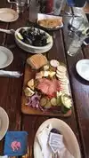 Had to eat outside as the place was packed. They had heaters going, but they could not overcome the cool breeze. I enjoyed my order of fish and chips and my wife enjoyed her Moules frites (fancy was of saying mussels and French fries). We shared a Chocolate brownie, as well. Our server Natalie was friendly, but just a little slow for me as I was cold. Would definitely eat there again. Parking is a little thin in the area. Fortunately we were able to walk from our hotel. Inside I thought the music was too loud for conversation.