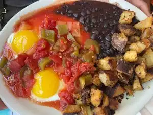 When you think about a breakfast place, some greasy spoon pops into your head. This isn't that. While they have some of the same fare, the non-standard things stick out and elevate it. Potatoes and black beans with eggs? You'll like these. Service was super quick and friendly, and the portions are huge. We ordered 2 plates, but shouldn't have, neither of us were able to finish it.
