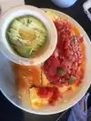 We had a Popeyes favorite with cottage cheese and a chili con queso with avocado, you can choose soups, potatoes, toasts, so many sides. Our food was good, staff was pleasant and they are not stingy with the servings. Kids would love it too.
