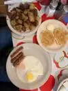 Four adults met for breakfast one morning. I ordered two scrambled eggs with bacon and French toast -- so much food came out! Bacon is cut really thin and cooks up really crisp; French toast is excellent. Others ordered fried eggs with bacon and pancakes -- also very good. Only thing ordered that we did not care for is the gingerbread pancakes. They were a little on the dry side. Service was great, food and coffee were very good. Highly recommend this eatery!