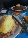 We got the omelettes. Of course. Nice and very generous servings. Had the pancake side. Nicely done. There was something of a wait to get in, since it is a family friendly place that gives a good value for the price. Not surprising to us, after dining here. Great place. Nice folks. Not fancy, a place for real people and real food. On our list of favorites for the future.