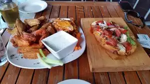 Very handy for the Aloft, the chicken wings are well worth the trip. Order the garlic potatoes also, I would have just eaten this as a main if I could! Reasonably priced and plenty of seating.