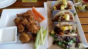 Only been here once, giving three stars due to the service which I wont get into. However the food: We both ordered the corn flakes chicken tacos. Oh man, better go get you some of this order ! A tasty creation with coleslaw(ew right?) somehow is absolutely delicious. The beans that were accommodated with it, were deliciously cooked with bacon and jalapenos gave a nice punch! :) The rice could of used some more flavor. Large covered patio....great for those hot sunny days!