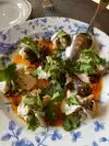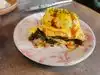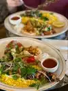Delicious Mediterranean..felt like Indian and African influences with meatball dumplings and an assortment of tajines to try-we had chicken , short ribs , shrimp, wonderful yogurt sauces w hints of cilantro and mint, service was ok, coffee took too long and was cold ...beautiful outdoor seating but the construction noise -yikes- that killed the lovely vibe. May have to sit inside next time. Love this spot