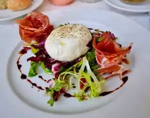 My companion knew of this restaurant and recommended it as a quiet place to eat. . We enjoyed a light lunch in a break from visiting an exhibition. There was a good choice of mains which was all we wanted and the warm salmon salad and a soft poached egg on a bed of polenta with wild mushrooms tasted as good as it looked, The service was swift and pleasant.