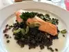 First, I want to mention that we had a superb waiter in Freddy. He was attentive and eager to please. And the atmosphere is wonderful with huge windows looking out into Central Park. I gave this score of 2 dots based on the taste of the food. I ordered the Vegetable Cassoulet. It was not visually attractive. The vegetables were mushy and the seasoning was nondescript. My husband ordered the salmon, for which the chef held the butter since he is lactose-intolerant. My husband thought that olive oil or some other fat might have been substituted for the butter, but it came to him dry and unappealing. We will not eat here again.
