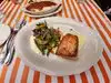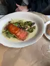 Great, attentive service for lunch. Outstanding lasagna. Fish of the day was halibut, cooked perfectly. Semolina biscuit slightly burnt on the bottom gave a carbony character. The mushrooms were not very uniform in their size and cut, lending a rubbery texture