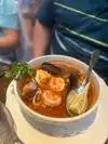 I had to be solo guy while my spouse was doing business in Seattle. I tagged along, but during the day I had to enjoy the sights, sounds and food of Seattle on my own. I read some reviews on a Seattle institution for chow called The Pink Door, and decided to venture there for lunch all by my lonesome. I got there as the joint opened, joined the no reservations line of folks waiting, and despite the length of the line, easily got in. I opted to sit at the bar, avoiding the look of the single guy at a table who couldn't get a date or a friend. My service was provided by a bartender who juggled his duties while promptly taking my order. I selected the Ciopino. The food came out promptly, without the rush. As I started to sample my dish, I was soon joined at the bar by other hungry diners. I must say, my Ciopino was one of the better experiences I've had with the dish; it was rich in seafood with a tomato broth that was flavorful and well-rounded. I wish I could have complimented it with a nice white wine, but I'd recently put wine on my no-go list, at least for a while. Hopefully, future business trips will take me there again and I'll definitely try a reservation; next time for dinner with the spouse.