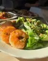 You really have to be looking for this spot — it’s literally just a pink door with no sign out front, which only adds to its charm. Definitely make reservations; even at 11:30 a.m. when they opened for lunch, the place was already bustling. We started with a half carafe of crisp white wine while my husband enjoyed a local brew. The fritto misto was fresh and perfectly fried — light, crunchy, and delicious. We followed with a large Caesar salad topped with seared prawns — the portions were generous and the prawns were huge, tender, and full of flavor. The pasta vongole was equally impressive, loaded with clams and beautifully seasoned. Even though we shared everything, we still left absolutely full and happy. The ambiance is quirky yet cozy, the service impeccable, and James along with the entire waitstaff made us feel so welcome. We absolutely loved everything about this place and can’t wait to return.