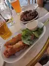 We were walking around and deciding on a lunch place and chose this restaurant . It is architecturally a beautiful building. A fire was lit with small tables around the hearth and there are various seating areas. It has a loft area with additional tables and a long bar. with a large selection of beers on tap.The service was good and not traditional pub food. The menu had selections for everyone at the table. I chose the tapas plate,which was a meal in itself, my husband had the salmon sandwich and my friend opted for breakfast fare. We walked in without reservations, however, this restaurant is really crowded in the summer and on warm evening and I would call about reservations.