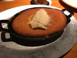 I came here for dinner while in town. My waiter, Thomas, helped me narrow down my choices to the jalapeño cornbread as a starter and short rib stroganoff as my entree. Both did not disappoint. The spiciness of the bread mixed with the sweetness of the honey butter was a great combination. The meat in the stroganoff was so tender and gave an unexpected flavor to a traditional meal. Guiltily, I practically ate the whole entree. I finished up my meal with their famous butter cake ala mode. The flavor of the cake, blended with the salted caramel and ice cream was heavenly . Thomas was not only helpful with the menu, but his service was attentive, but not overly so. He, along with other staff ensured my tea was full and that the food was good. Their hospitality was kind and allowed me the space to read my book.