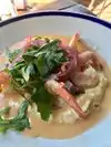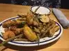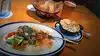For an appetizer we had the Frrtto Misto which was an excellent dish. . But there were only 3 shrimp and hardly any calamari which were dime sized plus it had an over abundance of veggies….yellow peppers, zucchini and squash and long green beans. It wasn’t balanced. But it was good. I will post a picture of the appetizer. I had the salmon burger. I rate this poor for a burger. The patti had no flavor at all. The wheat bun was rubbery. Then the quac was squished all over squished out of my burger. The menu said avocado. I got squished guacamole. I ate only half of the patti with a fork. The rubbery bun had to go. It was not fresh bread at all. Lastly the fries that came with my Salmon burger were forgettable. Seemed cheap cut and a lot of ends. Could do better here.