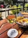 We visited for lunch today and luckily the weather is beautiful for late October so we sat on the patio. Service was great and our food very tasty. My beef on a bun was delicious, my husband's burger very good and my daughter's salmon burger very tasty. Great food and reasonable prices.
